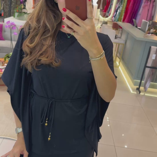 Conjunto em poliamida, acompanha cinto para passante. Calça ampla de elástico na cintura. Temos em duas variantes