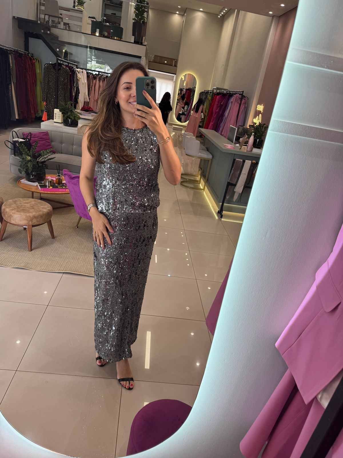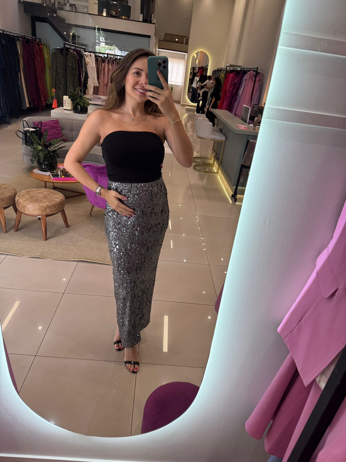 Toda em paete, com elastico na cintura